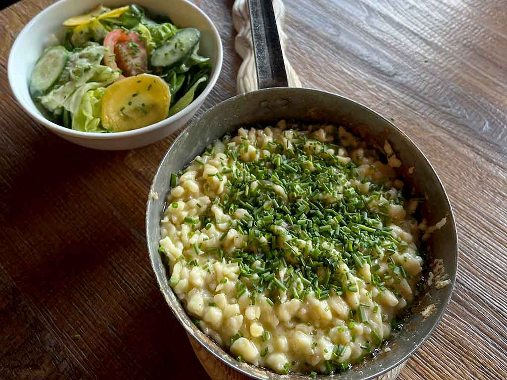 Auf unserer Sonnenterrasse mit Blick auf den Zellersee oder im urigen Stüberl verwöhnen wir Sie mit bodenständiger Hausmannskost oder selbstgemachten Schmankerln. Wer es pikant liebt, lässt sich unseren selbst geräucherten Speck servieren, Naschkatzen stürzen sich auf den selbstgemachten Kaiserschmarrn und Liebhabern der deftigen Küche grillen wir